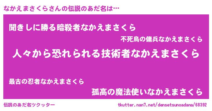 ヘコむあだ名 | 『なかえまさくら(小並感)』『なか太郎』 |