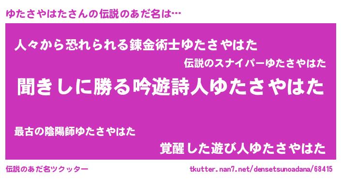 | ヘコむあだ名 | 『ゆたさやはた(小並感)』『ゆたお』 |
