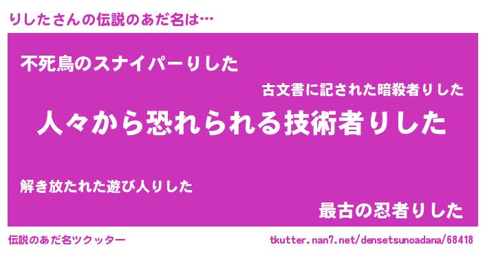 | 意味不明あだ名 | 『自称りした』『眠気覚ましガムりした味』 |