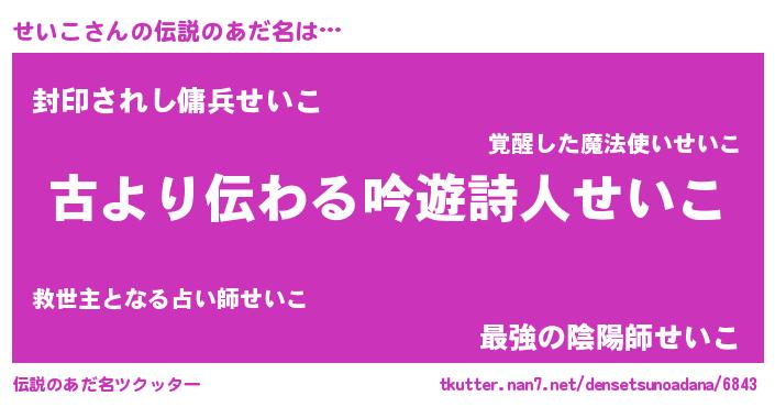 | ヘコむあだ名 | 『せいこ(笑)』『せいふぇ~』 |
