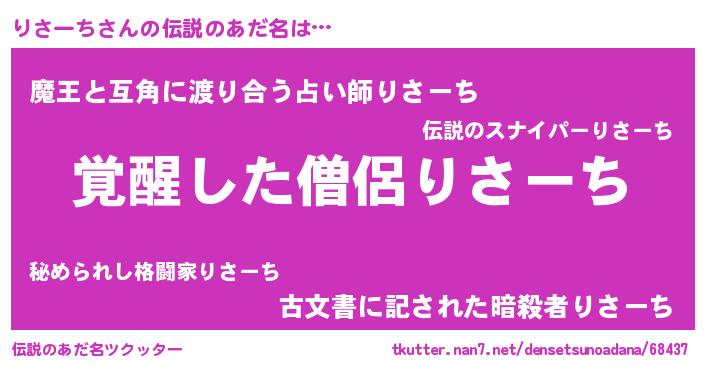 | ファンタジー風あだ名 | 『カークリサラー』『ファントムリサス』 |