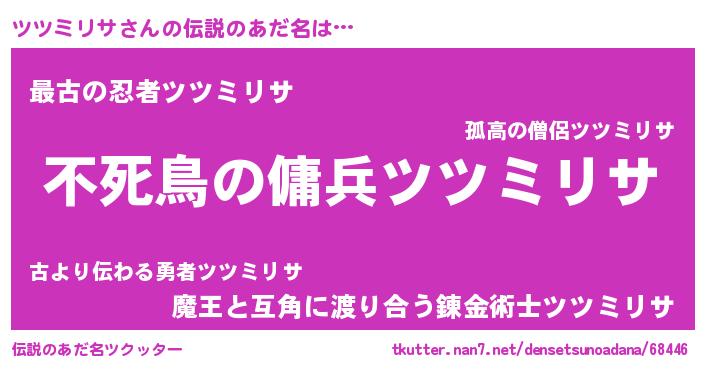 | ヒーロー風カッコイイあだ名 | 『スーパーツツミリサ』『暗黒騎士ツツ』 |