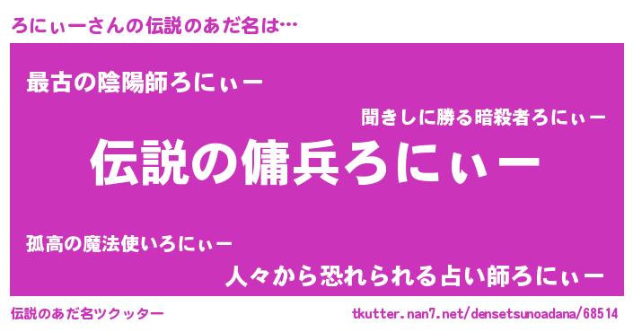 | 意味不明あだ名 | 『住所不定無職ろにぃー(43歳)』 |