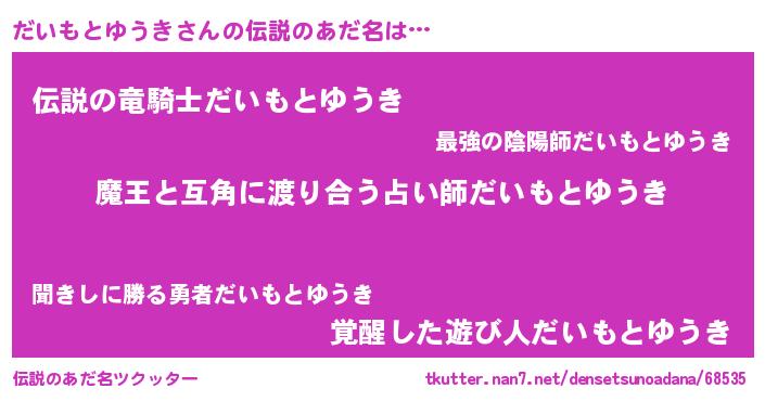 | 男性向けラノベタイトル風あだ名 | 『ノーゲーム・ノーダイモトユウキ』 |