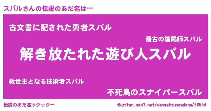| ヒーロー風カッコイイあだ名 | 『魔戒騎士スバ』『ネオスバル』 |