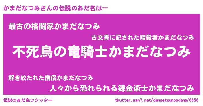 | 女子向けラノベタイトル風あだ名 | 『男装かまだなつみの憂鬱な任務』 |
