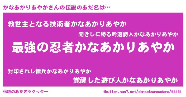 | ファンタジー風あだ名 | 『エターナルカナアカリアヤカー』 |