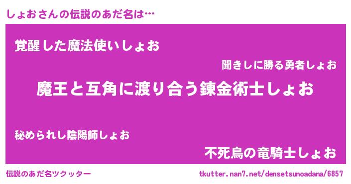 | 男性向けラノベタイトル風あだ名 | 『転生したらしょおだった件』 |