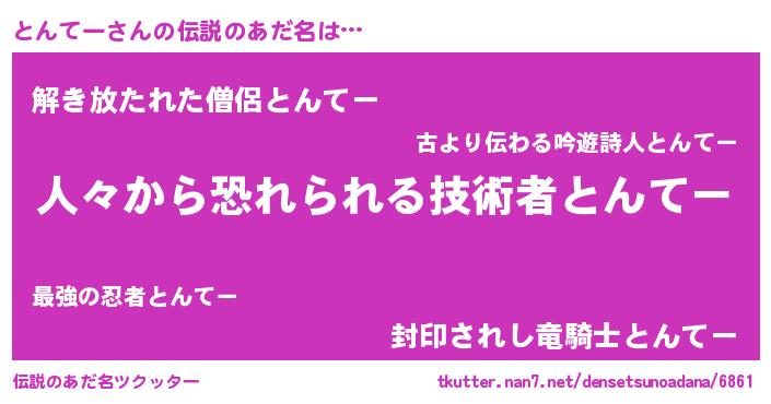 | 男性向けラノベタイトル風あだ名 | 『緋弾のトンテー』『トンテースレイヤー』 |