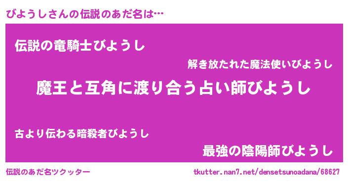 | ヒーロー風カッコイイあだ名 | 『愛の使者びようし』『スーパービヨウシ』 |