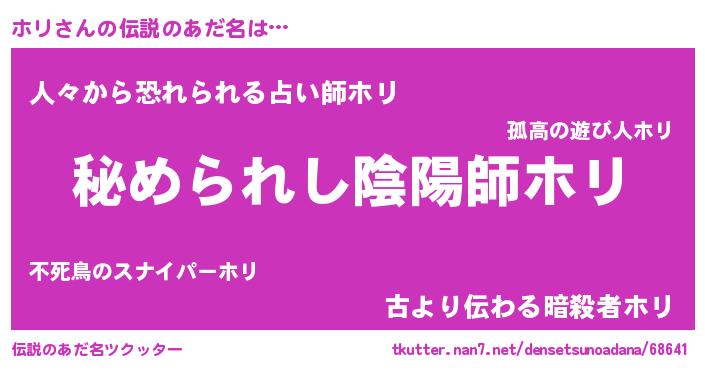 | 男性向けラノベタイトル風あだ名 | 『魔弾の王とホリ』『魔法科高校のホリ』 |