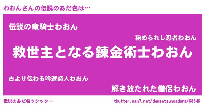 | 男性向けラノベタイトル風あだ名 | 『わおんに滅ぼされるだけの簡単なお仕事です』 |