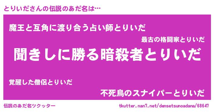 | 男性向けラノベタイトル風あだ名 | 『とりいだという概念が存在しない退屈な世界 』 |