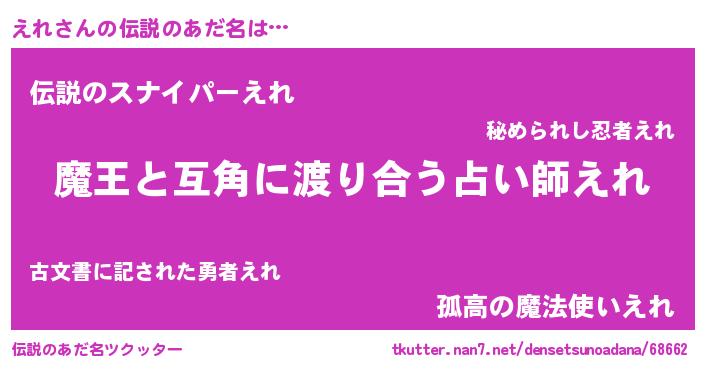 | 女子向けラノベタイトル風あだ名 | 『えれ恋絵巻』『えれ姫と円卓の騎士』 |