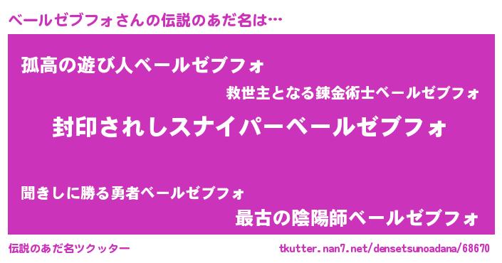 | 意味不明あだ名 | 『住所不定無職ベールゼブフォ(89歳)』 |