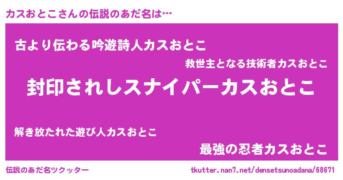 | ヘコむあだ名 | 『カスっふぃ~』『カスおとこ(笑)』 |