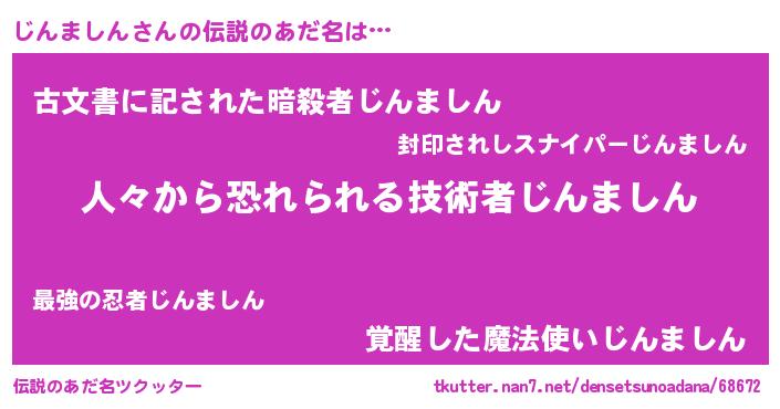| ヒーロー風カッコイイあだ名 | 『正義の使者じんましん』『天弓騎士ジン』 |