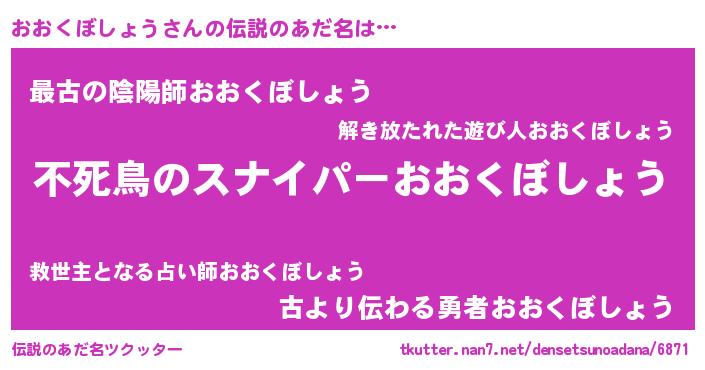 | ヒーロー風カッコイイあだ名 | 『スーパーオオクボショウ』 |