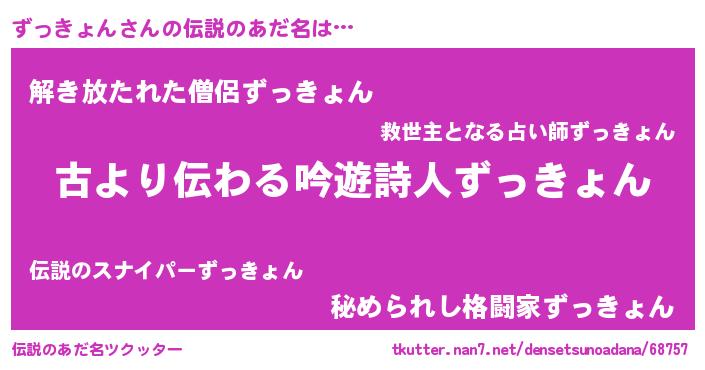 | ヒーロー風カッコイイあだ名 | 『ネオズッキョン』『暗黒騎士ズッ』 |
