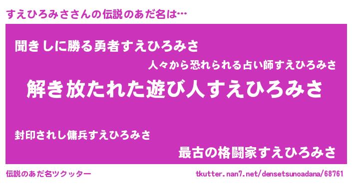 | 男性向けラノベタイトル風あだ名 | 『すえひろみさの嫁は女の子じゃないと思った?』 |