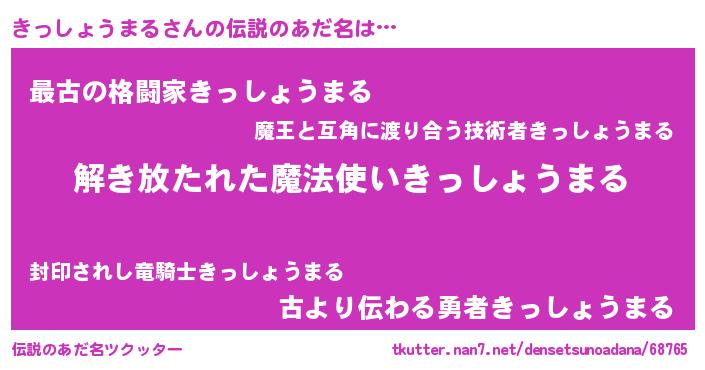 | ヒーロー風カッコイイあだ名 | 『仮面キッダー』『銀牙騎士キッ』 |