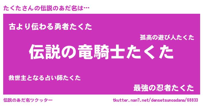 | 意味不明あだ名 | 『ペロリンたくた』『永久保存たくた』 |