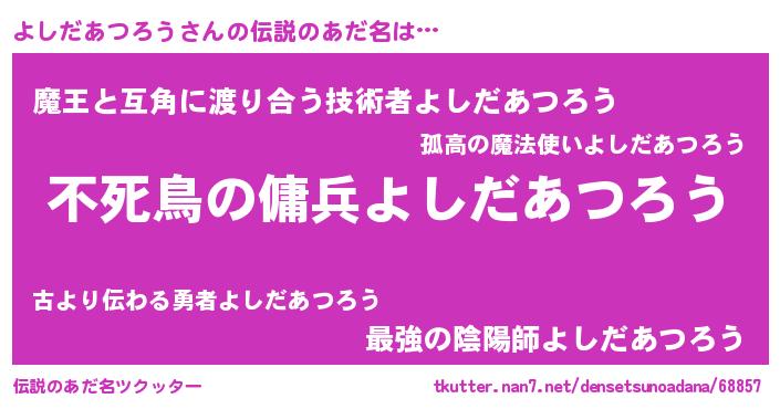 | 男性向けラノベタイトル風あだ名 | 『よしだあつろうの憂鬱』 |