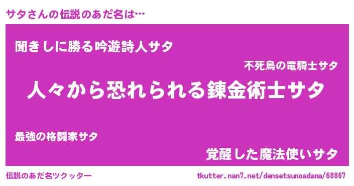 | 男性向けラノベタイトル風あだ名 | 『魔法科高校のサタ』『サタスレイヤー』 |
