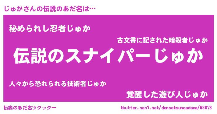 | 胡散臭い通販商品みたいなあだ名 | 『必ず成功する霊験あらたかなお札…その名も「じゅか」』 |