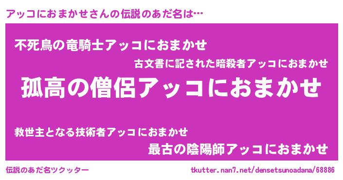 | 女子向けラノベタイトル風あだ名 | 『アッコにおまかせは平凡を望む』 |