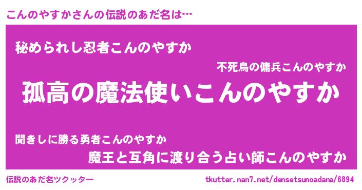 | 胡散臭い通販商品みたいなあだ名 | 『信頼と実績のサプリメント…その名も「こんのやすか」』 |