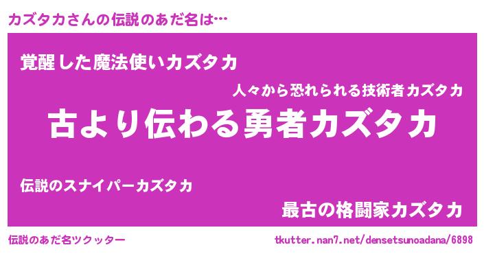 | 意味不明あだ名 | 『永久保存カズタカ』『自称カズタカ』 |
