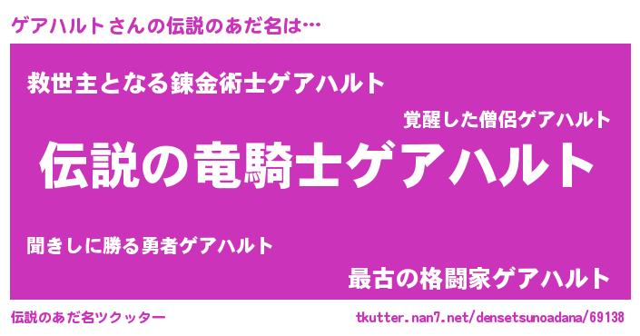 | ヒーロー風カッコイイあだ名 | 『超時空戦士ゲアハルト』『仮面ゲアダー』 |