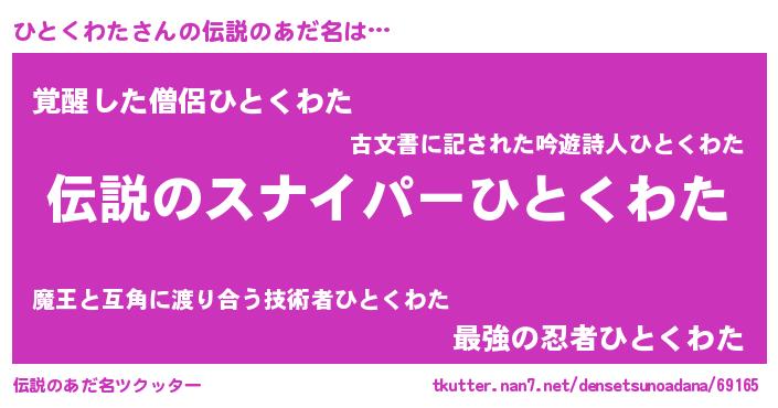| 胡散臭い通販商品みたいなあだ名 | 『必ず成功する霊験あらたかなお札…その名も「ひとくわた」』 |