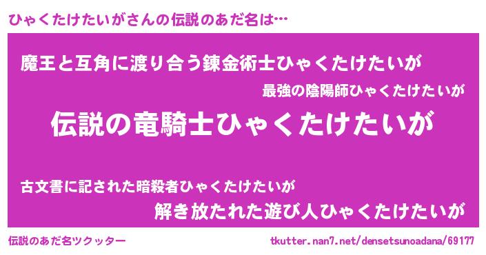 | 欧米人風あだ名 | 『マイケルひゃくたけたいが』 |