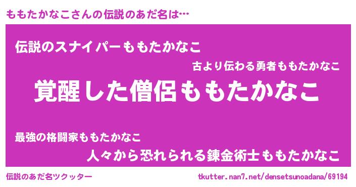 | ヒーロー風カッコイイあだ名 | 『幻影騎士モモ』『スーパーモモタカナコ』 |