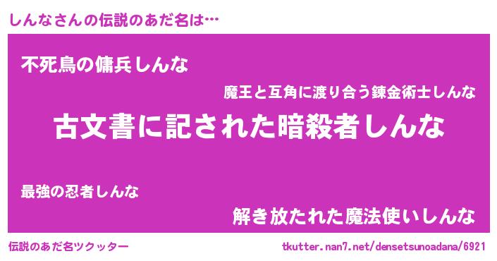 | 男性向けラノベタイトル風あだ名 | 『しんなに滅ぼされるだけの簡単なお仕事です』 |