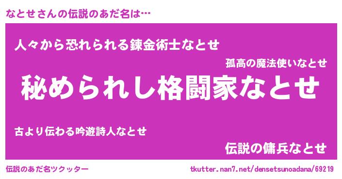 | ファンタジー風あだ名 | 『エターナルナトセー』『ゼナトトゥ』 |