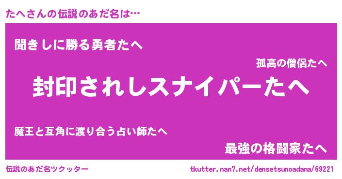 | ヒーロー風カッコイイあだ名 | 『スーパータヘ』『ネオタヘ』 |