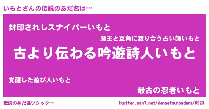 | ヒーロー風カッコイイあだ名 | 『ネオイモト』『スーパーイモト』 |