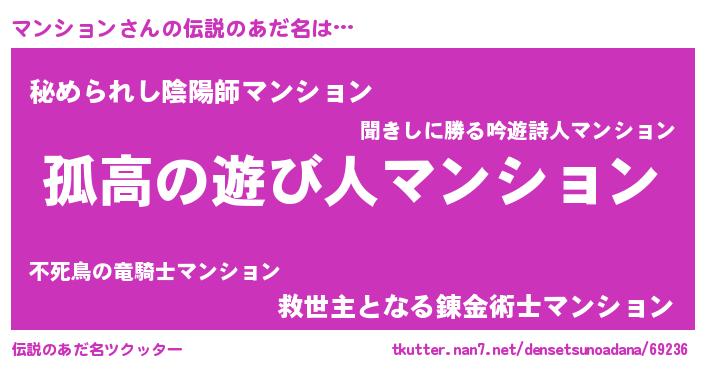 | 男性向けラノベタイトル風あだ名 | 『緋弾のマンション』 |