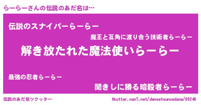 | ヒーロー風カッコイイあだ名 | 『魔戒騎士ラー』『仮面ラーダー』 |