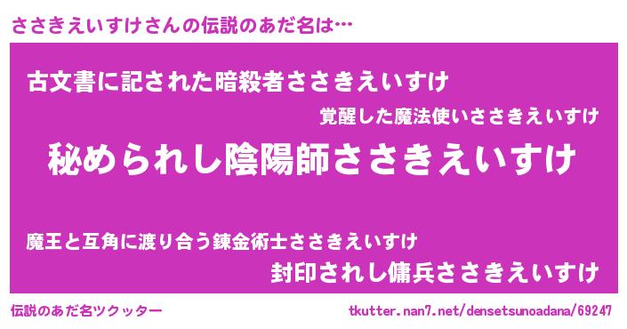 | 男性向けラノベタイトル風あだ名 | 『魔法科高校のささきえいすけ』 |