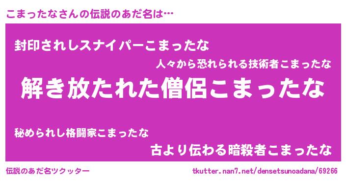 | ヒーロー風カッコイイあだ名 | 『銀牙騎士コマ』『スーパーコマッタナ』 |