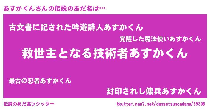 | ヒーロー風カッコイイあだ名 | 『天空の使者あすかくん』『仮面アスダー』 |