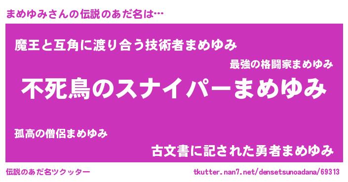 | 胡散臭い通販商品みたいなあだ名 | 『モテモテ間違いなし霊験あらたかなお札…その名も「まめゆみ」』 |