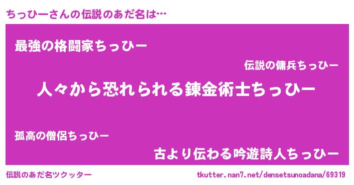| ヒーロー風カッコイイあだ名 | 『正義の使者ちっひー』『ネオチッヒー』 |