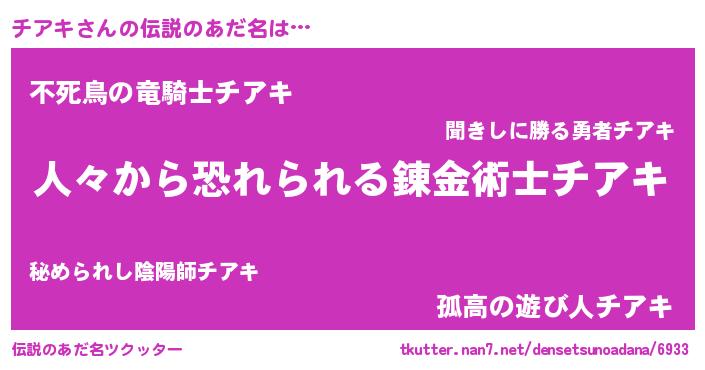 | 意味不明あだ名 | 『住所不定無職チアキ(85歳)』 |