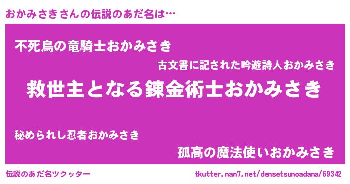 | ヒーロー風カッコイイあだ名 | 『慈愛の使者おかみさき』『仮面オカダー』 |