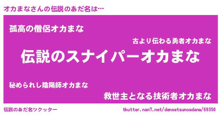 | 意味不明あだ名 | 『住所不定無職オカまな(81歳)』 |